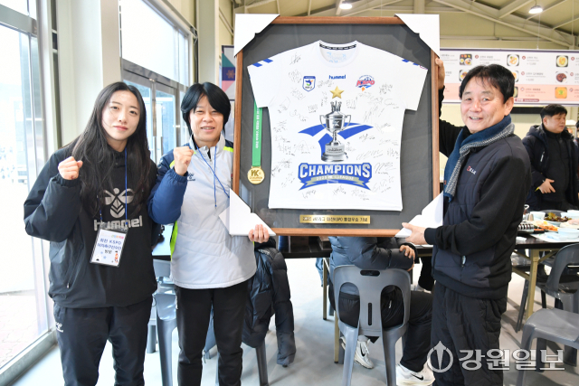 2025 시즌, 국내 여자실업축구 최초로 트레블을 달성한 화천KSPO 선수단과 강선미 감독이 26일 화천산천어축제장을 찾아 최문순 군수에게 사인 유니폼을 선물하고, 축제 프로그램을 체험했다. 화천KSPO는 지난해 전국여자축구선수권대회와 전국체육대회를 연달아 제패한 데 이어 WK리그 정규리그 1위, 챔피언결정전 우승까지 달성했다.