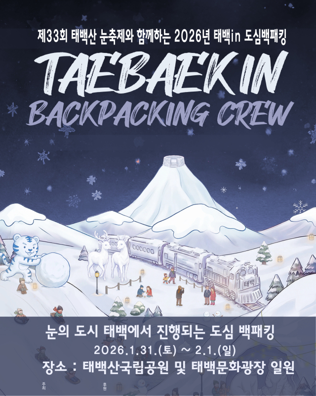 【태백】태백시는 오는 1월 31일부터 2월 1일까지 이틀간 황지연못 내 태백문화광장 일원에서 '2026년 태백 in 도심 백패킹 페스티벌'을 개최한다.