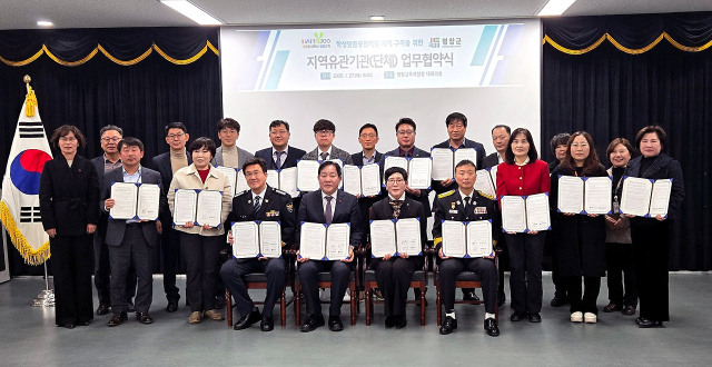 평창교육지원청은 27일 교육지원청 대회의실에서 지역 내 23개 유관기관·단체와 ‘학생맞춤통합지원을 위한 업무협약(MOU)’을 체결했다. 이날 협약식에는 김금숙 평창교육장을 비롯해 심재국 평창군수, 유기석 평창경찰서장, 김근태 평창소방서장 등 지역 내 유관기관 및 단체의 주요 관계자들이 참석했다.