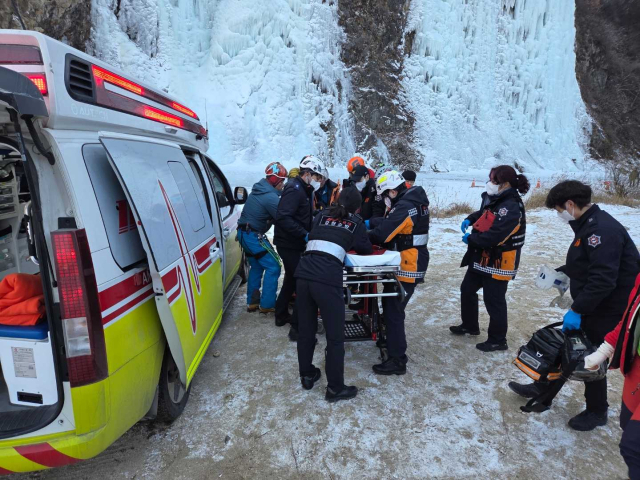 27일 오전 10시30분께 원주시 지정면 판대리 빙벽장에서 50대 남성 A씨가 빙벽 등반 중 7m 높이 아래로 추락했다. 이 사고로 A씨가 다쳐 병원으로 옮겨졌으며, 경찰은 정확한 사고 원인을 조사 중이다.