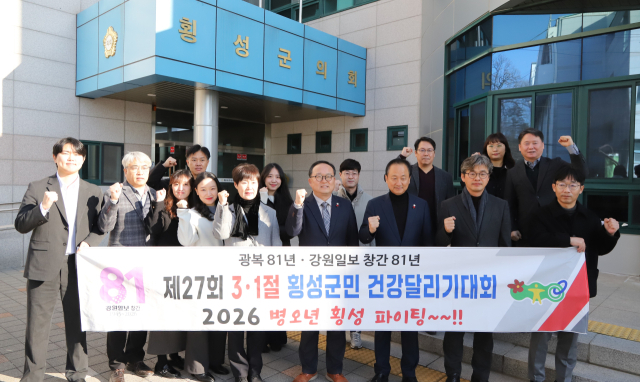 ◇횡성군의회(의장:표한상) 의원들과 의회사무과 직원들은 지난 28일 군의회 앞에서 오는 3월1일 치러지는 제107주년 3·1절기념 제27회 횡성군민건강달리기대회 참가와 책임 있는 의정을 다짐하며 파이팅을 외쳤다.