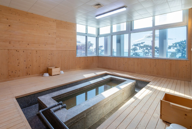 돌머리해수찜치유센터 2층에는 총 8개의 분리된 공간이 마련돼 있어, 2인부터 최대 15인까지 동시에 해수찜을 즐길 수 있다. 탕에 앉으면 창을 통해 내려다보이는 돌머리해변의 탁 트인 경치 또한 일품이다.