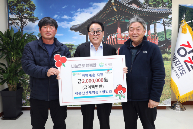 점봉산산채영농조합법인(대표:최관수)은 28일 인제군청을 방문, 어려운 이웃을 위해 써달라며 성금 200만원을 최상기군수를 통해 기탁했다.