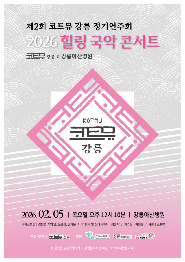 코트뮤 강릉의 정기연주회 ‘2026 힐링 국악 콘서트’가 다음달 5일 강릉아산병원에서 열린다.
