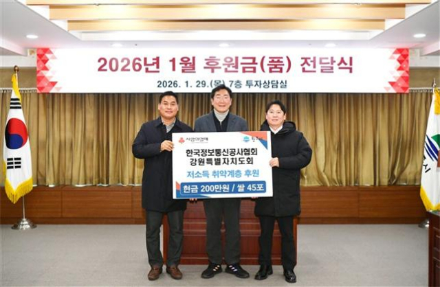 한국정보통신공사 강원특별자치도회(회장:이상오)는 최근 원주시청에서 불우이웃돕기 성금 200만원과 쌀 450㎏을 원주시에 전달했다.