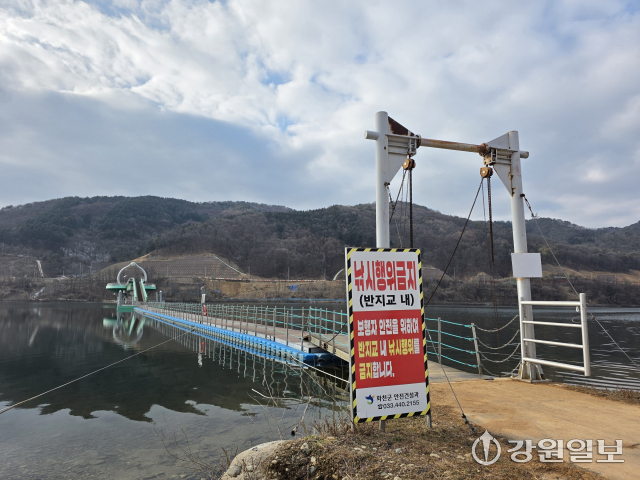 ■대책 마련 부심=현재 별도의 입장료 없이 개방, 운영 중이다. 상시 활용성 제고를 위해 4계절 이용 가능한 완전한 보도교 건설이 필요한 실정이다. 군 관계자는 군의회 답변에서 “파크골프장, 붕어섬 등 기존의 관광자원을 활용한 북한강 호수변 체험공간 조성사업과 연계, 반지교 운영 활성화를 위해 국비 확보에 힘쓰겠다”고 말했다.
