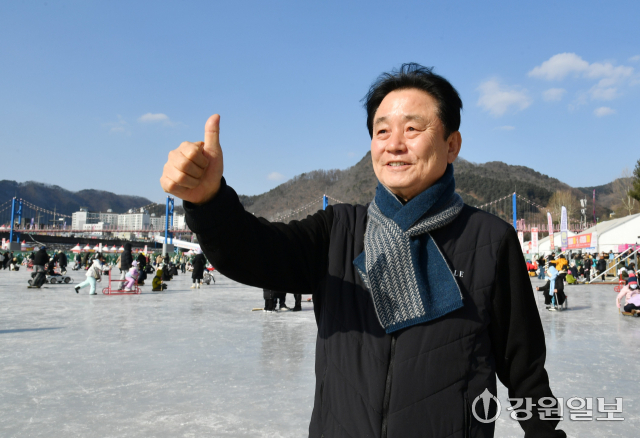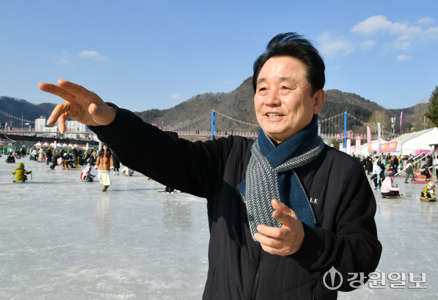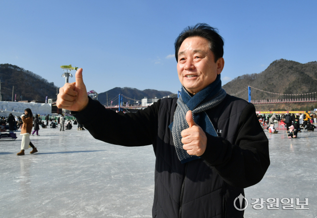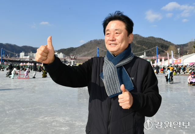 ■올해도 축제 첫 날 눈·비가 내려 어려움이 많았는데=“새벽 5시에 머리도 감지 못하고 모자를 눌러 쓰고 나와 아침도 거른 채 축제장을 지켰다. 그 이른 시간에 공무원들과 축제 종사자들도 다 나와 한마음으로 물을 퍼내고 눈을 치우며 성공적인 축제 시작에 힘을 보탰다. 힘들었을텐데 불평하는 공무원들이 없었다. 23년 전 축제를 처음 시작할 때는 축제장 결빙을 걱정하지 않았는데 요즘은 이상기후로 결빙을 걱정하는 시대가 됐다. 이상기후로 산천어축제의 미래도 걱정해야 할 상황이다.”