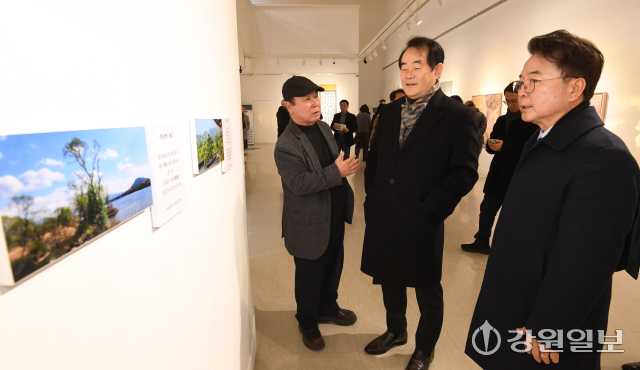 회원으로 작품을 출품한 육동한 춘천시장은 “일곱 번째 동행전에 별 기여 없이 참여하게 돼 미안한 마음이지만, 친구들이 부담스러워하지 않고 받아줘서 감사하다”며 “이 모임을 위해 헌신하고 노력해 준 친구들에게 감사를 전한다”고 밝혔다. 황재국 강원대 명예교수는 “기해(己亥)의 ‘기(己)’는 오행에서 황금색을 의미하므로 기해생은 ‘황금 돼지’에 해당해 복이 많다”며 “서로 돕고 이끌어주는 친구들의 우정이 앞으로도 계속해서 황금처럼 빛나기를 바란다”고 격려했다. 한편 이번 전시는 오는 4일까지 춘천미술관 1·2관 전관에서 진행된다.