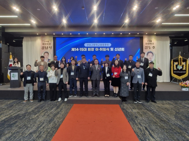 경포고 총동문회장 이취임식이 지난달 31일 세인트컨벤션에서 열렸다. 이날 김두호 회장이 취임하고, 김남식 회장이 이임했다.