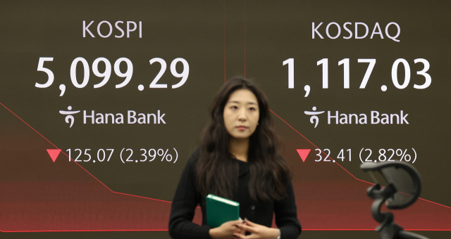 한국거래소에 따르면 이날 코스피는 전장보다 274.69포인트(5.26%) 내린 4,949.67로 거래를 마감했다.