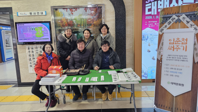 태백문화원(원장:최명식) 서예반(강사:권중모)은 2일 태백시청 1층 로비에서 입춘첩 써주기 행사를 진행했다.