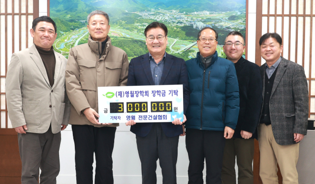 영월군전문건설협회(회장:금동화)는 지난 2일 군청에서 최명서 군수에게 인재육성을 위해 사용해 달라며 장학금 300만원을 기탁했다.