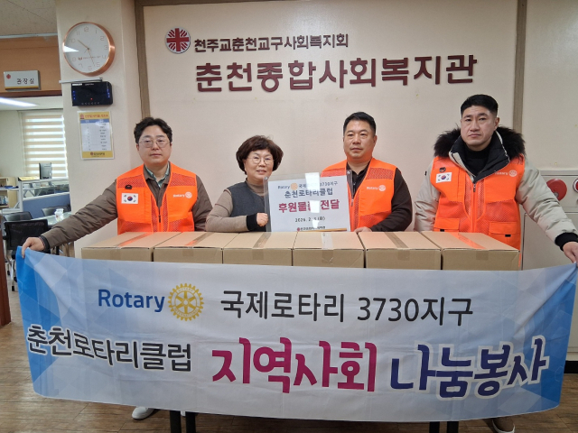 국제로타리 3730지구 춘천로타리클럽(회장:윤상호)은 3일 춘천종합사회복지관(관장:오미경)을 찾아 사골 30㎏을 후원했다. 다가오는 설을 맞아 마련된 이번 후원은 지역 내 취약계층 노년층에 전달될 예정이다.