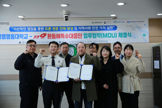119환동해특수대응단(단장:김문하)과 강릉영동대(총장직무대행:서원석)는 3일 드론을 통한 인명구조활동 및 각종 재난재해에서 활동할 공공안전 인재 양성을 위한 업무협약을 체결했다.