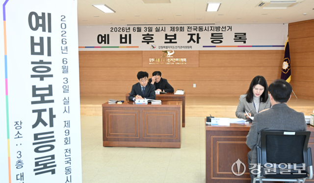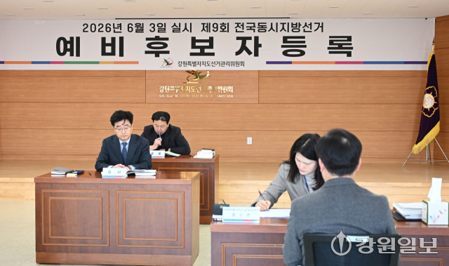 6·3 제9회 전국동시지방선거를 120일 앞두고 광역자치단체장과 교육감 선거 예비후보자 등록이 시작된 3일 강원자치도선거관리위원회에서 직원들이 예비후보 등록 접수를 받고 있다.