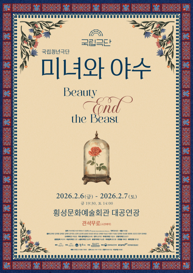 5일 횡성문화관광재단(대표:이재성)에 따르면 국립청년극단의 연극 '미녀와 야수'가 6일 오후 7시30분과 7일 오후 2시 두 차례 횡성문화예술회관 대공연장에서 선보인다. 공연은 전석 무료로 진행되며 2층 객석은 공연 당일 1시간 전부터 선착순 현장 발권한다.