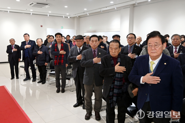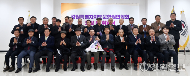 강원특별자치도문화원연합회장 이·취임식이 4일 춘천문화원 의암전시실에서 열려 12대 박주선 회장이 이임 하고 13대 권은석 회장이 새롭게 취임했다. 이날 행사에는 김진태 도지사, 이건실 도노인회장을 비롯한 내빈들과 시·군 문화원장 등이 참석해 축하의 뜻을 전했다.