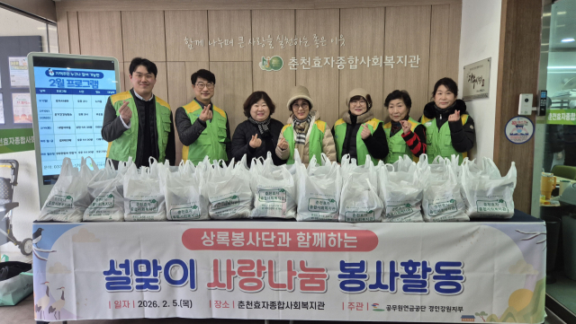 공무원연금공단 경인강원지부(지부장:서병철)가 5일 춘천효자종합사회복지관(관장:변영혜)를 찾아 ‘설명절 맞이 떡국 꾸러미’를 전달했다. 후원품은 복지관 이용 노년층 100명에 전달됐다.