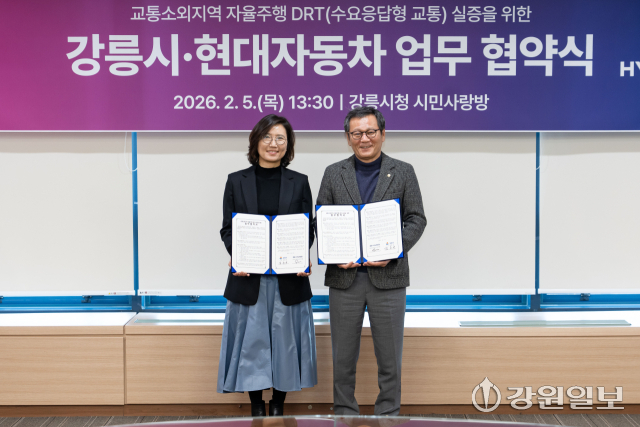 강릉시는 5일 강릉시청에서 현대자동차와 교통소외지역 자율주행 DRT 실증을 위한 업무협약을 체결했다. 이번 협약은 무인 자율주행 DRT 서비스 실증, 교통소외지역 이동권 보장, 시민과 관광객의 교통 편의성 증진, 자율주행 기술의 실제 도로 환경에서의 검증과 기술 신뢰성 확보를 목표로 추진된다.