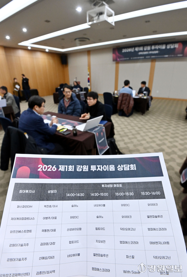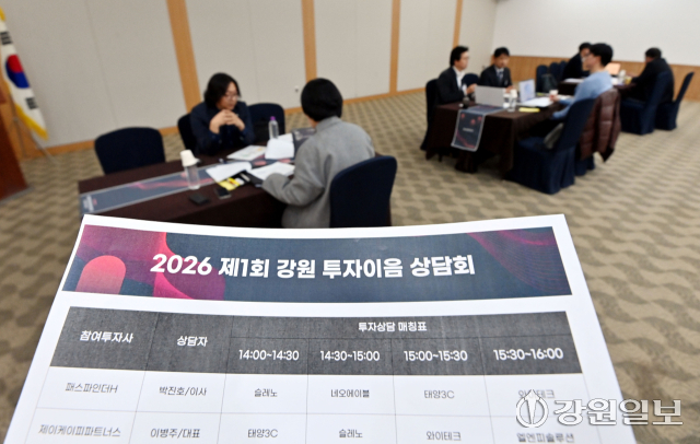 강원특별자치도는 5일 춘천 베어스호텔 의암홀에서 강원 벤처펀드와의 투자 연계를 위한 '2026년 제1회 강원 투자이음 상담회'를 개최했다. 임도혁기자