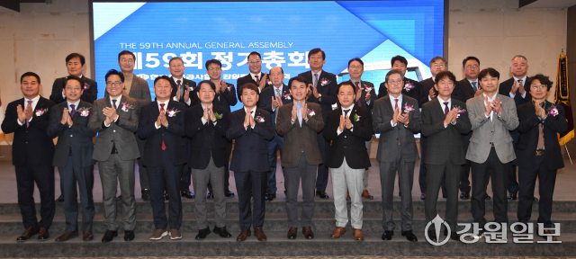 한국전기공사협회 강원특별자치도회(회장:최세헌) 제59회 정기총회가 5일 춘천 스카이컨벤션에서 김진태 지사, 노용호 대한전기협회 상근부회장, 전호철 한국전기신문사 사장 등 내빈 및 회원 등 200여명이 참석한 가운데 열렸다. 이날 신임 도회장·부회장 선거가 함께 진행돼 한정훈 한성전력㈜ 대표이사가 신임 회장으로, 이경호 두원전기㈜ 대표이사가 신임 부회장으로 선출됐다.