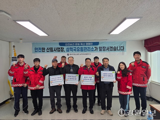 동부지방산림청 삼척국유림관리소는 5일 관리소 회의실에서 산림사업장 무사고 안전결의를 다지고, 사업 품질향상을 위해 3개 국유림 영림단과 소통간담회를 개최했다.