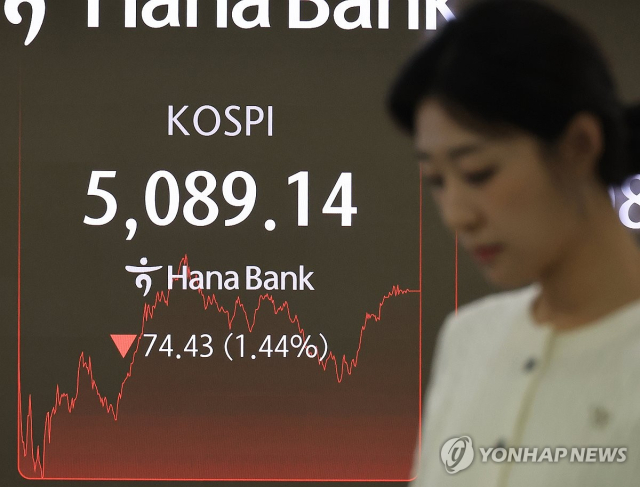 이날 코스피는 74.43포인트(1.44%) 내린 5,089.14에 장을 마쳤다.
