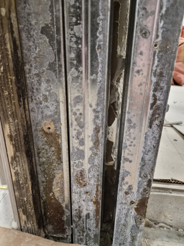권씨측은 업체가 보강 공사를 했다고는 하지만 곰팡이와 물이 새는 것은 그대로 였고 철재구조물에는 녹이 슬었지만 새로 교체가 아닌 기존 자제를 닦고 외벽으로 가린 ‘땜질식’ 공사가 진행됐다고 의심했다.