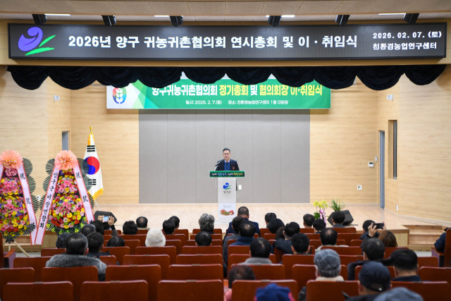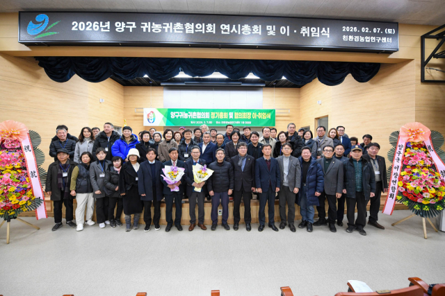 2026년 양구군귀농귀촌협의회장 이·취임식이 지난 7일 양구군친환경농업연구센터 대강당에서 열렸다. 이날 김법종 회장이 이임하고 이동석 회장이 신임 회장으로 취임했다.