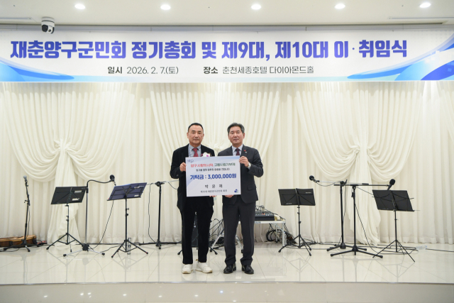 박윤재 재춘양구군민회장은 지난 7일 춘천세종호텔 다이아몬드홀에서 고향사랑기부금 300만원을 서흥원 양구군수에게 전달했다.