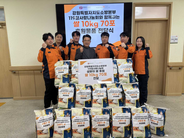 강원특별자치도소방본부(본부장:오승훈)는 설 명절을 앞둔 지난 6일 월드비전 춘천종합사회복지관과 춘천·화천지역 노인·장애인 거주시설, 아동복지센터 등 총 4곳을 방문해 쌀 10㎏ 170포와 기저귀, 젖병 등 생활 필수품을 전달했다.