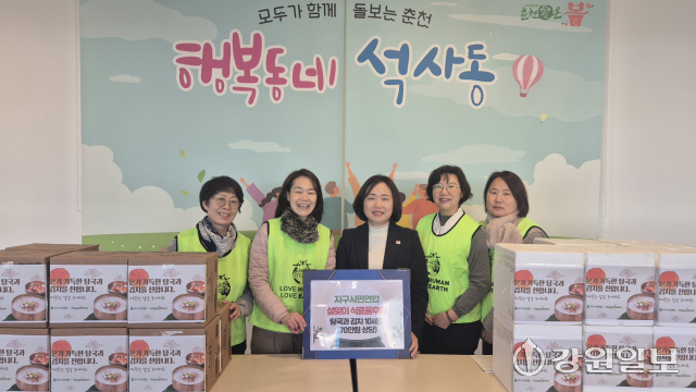 지구시민연합 강원지부(지부장:신미용)는 지난 6일 석사동행정복지센터를 찾아 온라인 모금 행사로 마련한 70만원 상당의 탕국과 김치 세트를 취약 계층 후원을 위해 전달했다.
