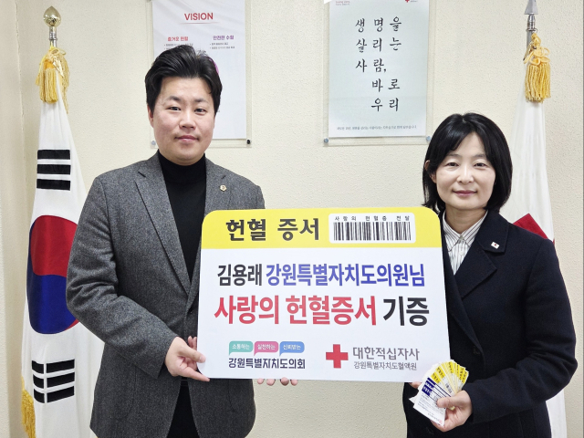 김용래(국민의힘·강릉) 강원특별자치도의원은 지난 6일 대한적십자사 강원혈액원을 방문해 헌혈증서 30장을 기증했다.