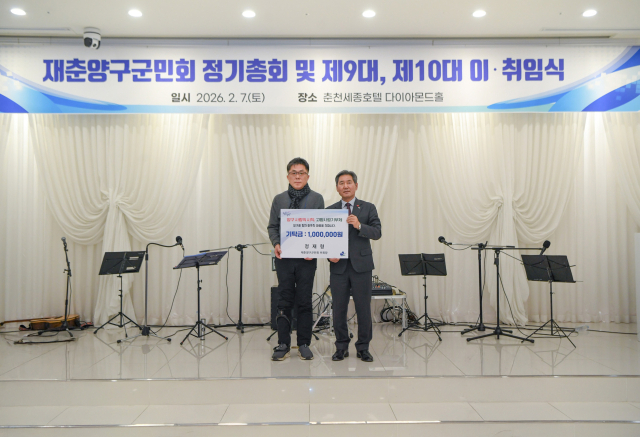 정재형 재춘양구군민회 부회장은 지난 7일 춘천세종호텔 다이아몬드홀에서 고향사랑기부금 100만원을 서흥원 양구군수에게 전달했다.