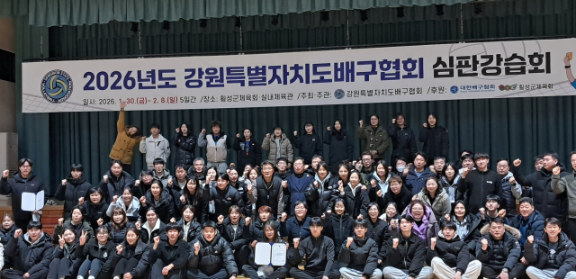 ◇강원특별자치도배구협회는 지난 8일 횡성실내체육관에서 2026년도 심판강습회 수료식을 가졌다. 이번 강습회는 지난 1월30일부터 진행돼 경기 규칙, 실전 상황별 판정 기준, 심판 매뉴얼 등에 대한 교육이 진행됐다.