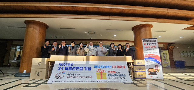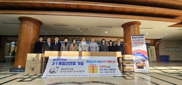 강원서부보훈지청(지청장:정백규)은 9일 서울 우면동 관문사에서 천태종 산하 단체 ‘나누며하나되기(이사장:보광스님)’로부터 국가유공자 어르신들을 위한 ‘행복나눔 감사 위문품 키트’를 전달받았다.