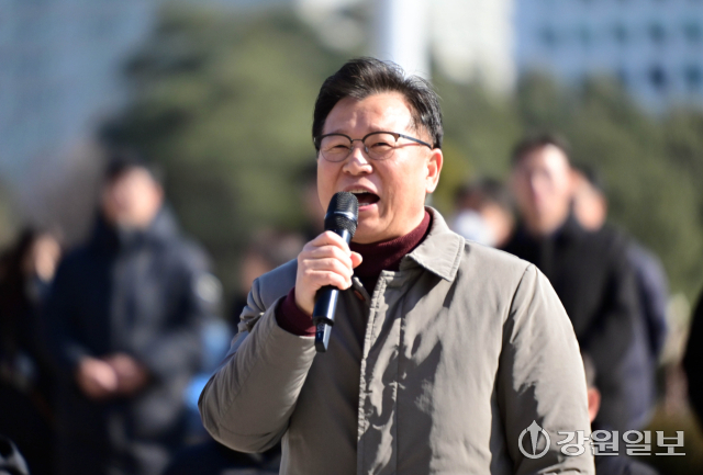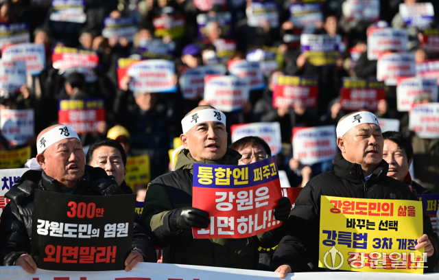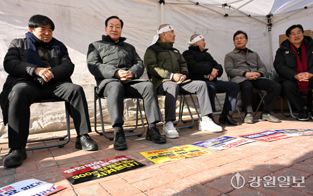 강원특별자치도민 3,000여명이 9일 국회의사당 본관 앞에서 '강원특별법 3차 개정안 통과' 촉구하고 있다. 신세희기자강원특별자치도민 3,000여명이 9일 국회의사당 본관 앞에서 '강원특별법 3차 개정안 통과' 촉구하고 있다. 신세희기자강원특별자치도민 3,000여명이 9일 국회의사당 본관 앞에서 '강원특별법 3차 개정안 통과' 촉구하고 있다. 신세희기자강원특별자치도민 3,000여명이 9일 국회의사당 본관 앞에서 '강원특별법 3차 개정안 통과' 촉구하며 목소리를 높이고 있다. 신세희기자9일 국회의사당 본관 계단 앞에서 열린 강원도민 국회 상경 집회 결의대회에 참가해 '강원특별법 3차 개정안 통과'를 촉구하며 삭발한 도민 김영화씨(사진 왼쪽부터), 김진태 지사, 김시성 도의장이 구호를 외치고 있다. 신세희기자한기호·이철규·박정하 국회의원이 9일 국회의사당 본관 계단 앞에서 열린 '강원특별법 3차 개정안 통과 촉구'를 위한 강원도민 국회상경 집회 결의대회에서 발언하고 있다. 신세희기자이양수 국회의원이 9일 국회의사당 본관 계단 앞에서 열린 '강원특별법 3차 개정안 통과 촉구'를 위한 강원도민 국회상경 집회 결의대회에서 발언하고 있다. 신세희기자유상범 국회의원이 9일 국회의사당 본관 계단 앞에서 열린 '강원특별법 3차 개정안 통과 촉구'를 위한 강원도민 국회상경 집회 결의대회에서 발언하고 있다. 신세희기자9일 국회의사당 본관 앞에서 열린 강원도민 국회상경 집회 결의대회에서 한기호·이양수 국회의원, 김진태 지사, 김시성 의장, 김천수 강원자치도 범국민추진협의회 추진단장 등이 강원특별법 3차 개정 통과를 촉구하며 천막 농성을 하고 있다. 신세희기자9일 국회의사당 본관 앞에서 열린 강원도민 국회상경 집회 결의대회에서 한기호·이양수 국회의원, 김진태 지사, 김시성 의장, 김천수 강원자치도 범국민추진협의회 추진단장 등이 강원특별법 3차 개정 통과를 촉구하며 천막 농성을 하고 있다. 신세희기자김태흠 충남지사가 9일 국회의사당 본관 계단 앞에서 열린 '강원특별법 3차 개정 통과 촉구'를 위한 천막 농성장에 찾아와 김진태 지사와 이야기를 나누고 있다. 이날 김태흠 충남지사는 국회 소통관에서 기자회견을 열고 '정치적 의도만 남은 행정통합 논의를 중단해야 한다.'고 밝혔다. 신세희기자강원특별자치도민 3,000여명이 9일 국회의사당 본관 앞에서 '강원특별법 3차 개정안 통과'를 촉구하며 목소리를 높이고 있다. 신세희기자
