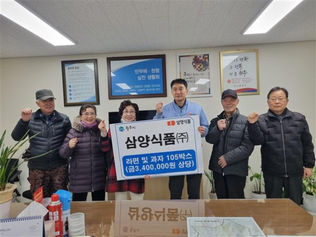 삼양식품 원주공장은 최근 우산동 경로당에 340만원 상당의 라면과 과자 105박스를 전달했다.