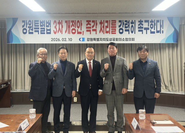 강원특별자치도상공회의소협의회(회장:엄정용)는 10일 강릉상공회의소 회의실에서 강원특별법 3차 개정안의 조속한 국회 통과를 촉구하는 상공인 성명서를 발표했다.