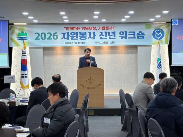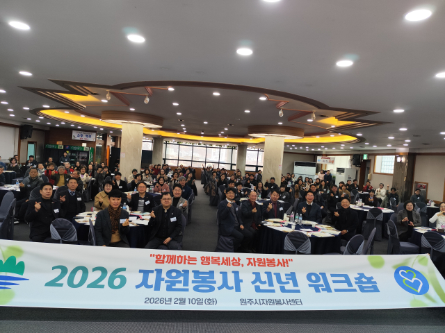 원주시자원봉사센터(센터장:최원지)는 10일 원주웨딩타운에서 원강수 원주시장 등 200여명이 참석한 가운데 ‘2026년도 자원봉사 신년 워크숍’을 진행했다. 이날 센터는 지난해 봉사 결과 및 올해 주요 사업계획 등을 소개했다.