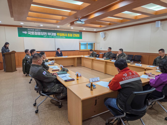 양구군 국토정중앙면(면장:이광영)은 10일 국토정중앙면사무소 회의실에서 면지역 주둔 군부대 주임원사들을 초청해 간담회를 가졌다. 이날 간담회에서는 양구군 인구늘리기 시책인 '내 고장 주민등록 갖기 운동' 동참 방안과 지역 현안에 대한 의견을 교환했다.