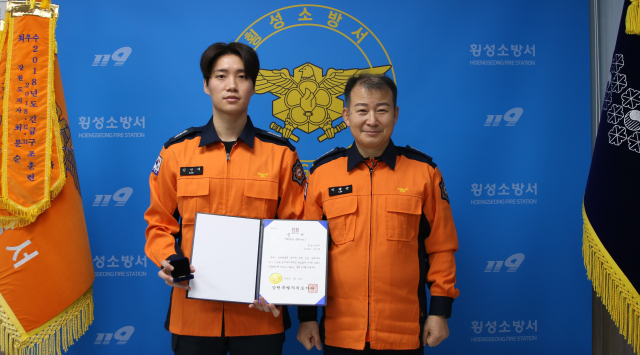 【횡성】횡성소방서(서장:이광순) 우천119안전센터 김민재 소방교와 공근119안전센터 조영인 소방사가 '브레인 세이버(Brain Saver)'를 수여받았다.