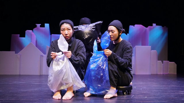 ‘둥둥’이라는 정체 모를 존재와 마주하는 지호를 따라 극은 두려움의 실체를 마주하고, 불안과 공존하는 법을 소개한다. 무대는 한 마디의 대사도 없이 오직 몸짓과 표정, 오브제의 움직임으로 불안과 두려움을 다뤄낸다. 일상에서 흔히 마주하는 비닐봉지를 주요 오브제로 활용해 인물과 감정과 공간을 자유롭게 변주한다.