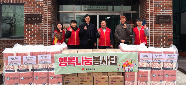 원주우체국(국장:한상희)은 11일 원주 봉산동 사회복지시설 천사들의 집·두울천사들의 집을 방문해 설 명절을 맞아 100만원 상당의 생필품과 화장지를 전달했다.