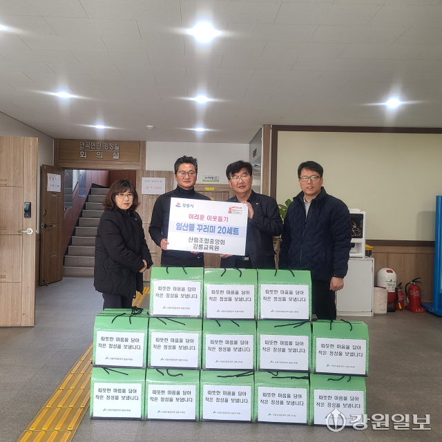 산림조합중앙회 강릉교육원 김호상 원장은 “설명절을 맞아 어려운 이웃들이 따뜻한 명절을 보낼 수 있도록 돕고자 준비했다.”라며, “작은정성이지만 위로와 희망이 되길 바란다.”라고 말했다.