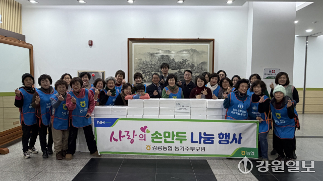 강릉농협 농가주부모임(회장: 최경인)은 지난 10일 강릉시 성남동 강릉농협 본점에서 손수 빚은 손만두를 다가오는 설을 맞아 지역 소외계층을 위한 나눔행사를 진행했다.
