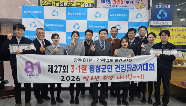 ◇횡성새마을금고 박덕식 이사장과 임직원들은 12일 금고 창구에서 오는 3월1일 치러지는 제107주년 3·1절기념 제27회 횡성군민건강달리기대회 참가해 완주와 풍요로운 지역 활성화를 다짐하며 파이팅을 외쳤다.