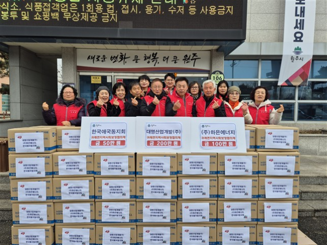 원주시 귀래면 대명산업개발(주)(대표:박희준)과 (주)하은에너지(대표:김영범), 한국애국동지회(회장:정창양)는 지난 11일 귀래면행정복지센터를 방문해 설 명절을 맞아 어려운 이웃을 위한 350만원 상당의 후원품을 전달했다.