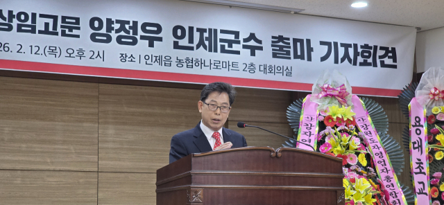 양정우 국민의힘중앙위원회 상임고문 겸 법무사가 12일 인제농협 하나로마트 2층 대회의실에서 군수 출마 선언을 했다.