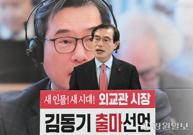 김동기 전 유네스코 대사는 12일 강릉대로 선거사무소에서 강릉시장 출마 기자회견을 열어 "37년 외교관의 식견, 오직 내 고향 강릉을 위해 전부 쏟아붓겠다"며 "결과로 증명하는 발로 뛰는 시장이 되겠다"고 밝혔다. 강릉=권태명기자김동기 전 유네스코 대사는 12일 강릉대로 선거사무소에서 강릉시장 출마 기자회견을 열어 "37년 외교관의 식견, 오직 내 고향 강릉을 위해 전부 쏟아붓겠다"며 "결과로 증명하는 발로 뛰는 시장이 되겠다"고 밝혔다. 강릉=권태명기자김동기 전 유네스코 대사는 12일 강릉대로 선거사무소에서 강릉시장 출마 기자회견을 열어 "37년 외교관의 식견, 오직 내 고향 강릉을 위해 전부 쏟아붓겠다"며 "결과로 증명하는 발로 뛰는 시장이 되겠다"고 밝혔다. 강릉=권태명기자